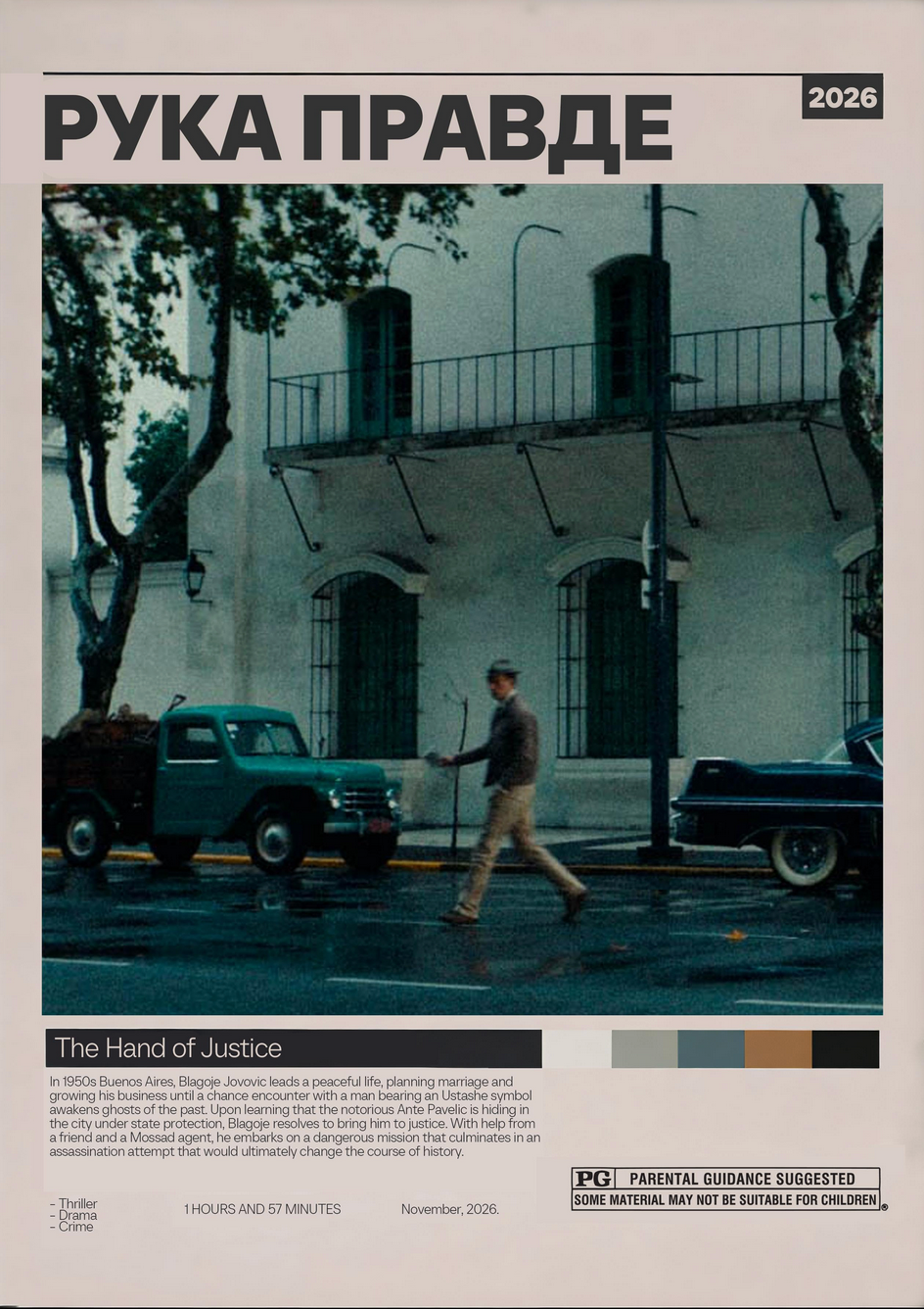 En el Buenos Aires de los años cincuenta, Blagoje Jovovic lleva una vida tranquila, planeando su matrimonio y expandiendo su negocio, hasta que un encuentro fortuito con un hombre que porta un símbolo ustacha despierta fantasmas del pasado. Al enterarse de que el notorio Ante Pavelic se esconde en la ciudad bajo protección estatal, Blagoje decide llevarlo ante la justicia. Con la ayuda de un amigo y un agente del Mossad, se embarca en una peligrosa misión que culmina en un intento de asesinato que, en última instancia, cambiará el curso de la historia.